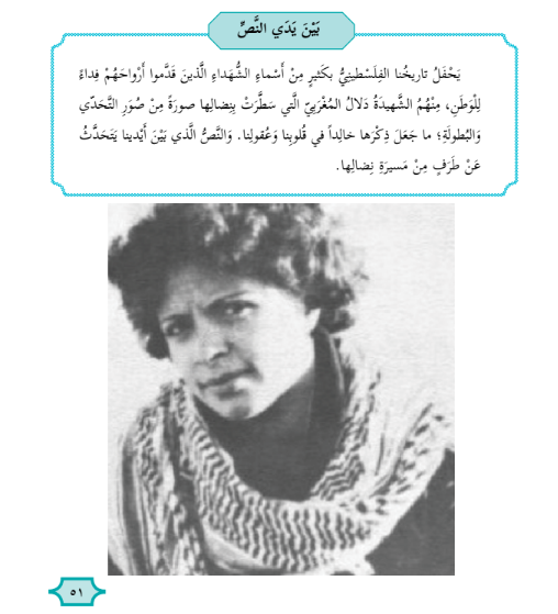 In a 5th-grade Arabic language textbook, students learn about Dalal al-Mughrabi, a Fatah terrorist who carried out the 1978 Coastal Road massacre, killing 38 Israelis — including 13 children. It was the deadliest terror attack on Israel before the Hamas-led onslaught of October 7, 2023. The 10-page text glorifies the attack as an act of “heroism” and praises al-Mughrabi.