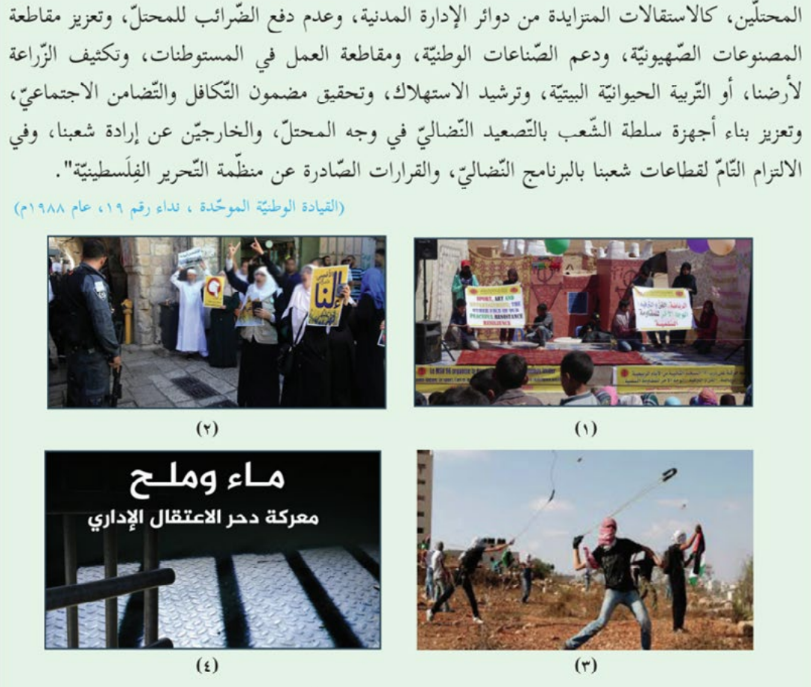 In another guide, for 10th-grade modern history and geography, armed resistance is presented as one of the legitimate ways to “rise up against the settlements in Palestine.”